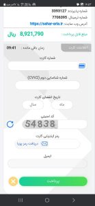 7_صفحه پرداخت برای ما باز می شود که باید در آن اطلاعات بانکی(شماره کارت، انقضا،cvv2،رمز پویا)و کد امنیتی در تصویر را وارد کنیم وپرداخت را بزنیم